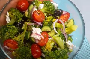 - Բրոկկոլին լվանալ, մասերի բաժանել և 1-2 րոպե եփել եռացող ջրում՝ նախապես ջրի մեջ մի փոքր աղ լցնելով:
