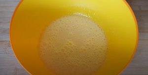 - Տարայի մեջ լցնել ձուն, շաքարավազը, վանիլինը, բուսական յուղը, թթվասերը և լավ հարել: