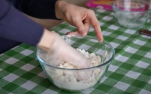 - Խմորը հունցել, ծածկել սննդային թաղանթով, և դնել սառնարանում 30 րոպե: