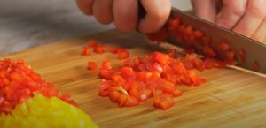 - Պղպեղները մանր խորանարդներով կտրատել: