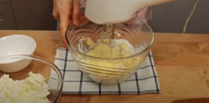 - Քիչ-քիչ ավելացնել սերուցքային պանիևը և հարել: