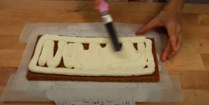 - Կրեմը հաստ շերտով քսել խմորայն շերտին, և հավասարաչափ տարածել:
