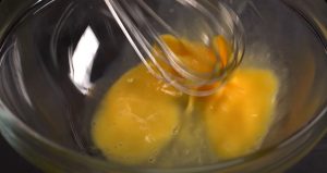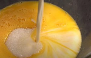 - Ձուն հարել, ավելացնել շաքարավազը և մի փոքր աղ: