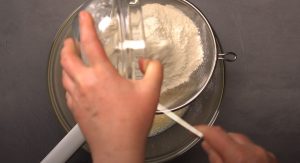 - Փխրեցուցիչը խառնել ալյուրին, և ավելացնել: