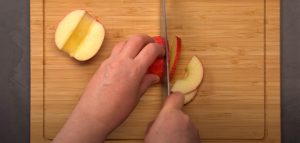 - Խնձորի միջուկը հեռացնել, բարակ շերտերով կտրատել:
