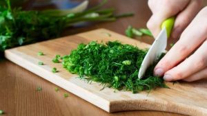 - Կանաչին մանր կտրատել: կարող եք նաև 1 կապից շատ վերցնել՝ ըստ նախասիրության: Համեղ է ստացվում մաղադանոսով, սամիթով կամ համեմով: