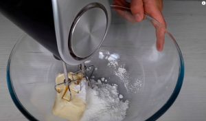 - Կարագը շաքարի փոշու հետ միասին հարել: