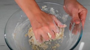 - Ավելացնել ալյուրը, և խառնել, որ ստացվի փափուկ խմոր: