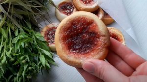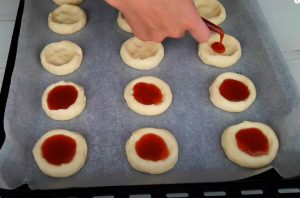 - Մեջտեղում փոսիկ բացել, մեջը լցնել ջեմը: