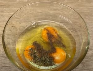 • Ձուն, աղը, սև պղպեղը և համեմունքները հարել: