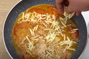 • Այնուհետև ավելացնել քերած պանիրը, և թավայի բերանը կափարիչով փակել: