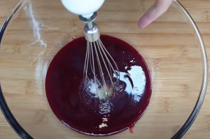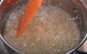 • Օշարակի մեջ լցնել 100 գ շաքարավազ, դնել կրակի վրա, խառնել՝ մինչև շաքարավազը լուծվի, այնուհետև սառեցնել, քանի որ տաք վիճակում չի ստացվի: