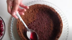• Բիսկվիթը թրջել բալի հատիկներից ավելացած գինով, և լցնել կրեմի հետ խառնած բալի հատիկները: