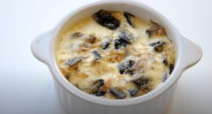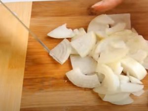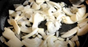 - Տապակված սոխը լցնել սնկի վրա՝ համեմելով աղով և պղպեղով: