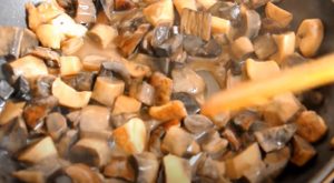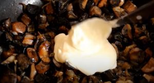- Մեկ այլ թավայի մեջ քիչ ձեթով սունկ տապակել (մոտ 40 րոպե):