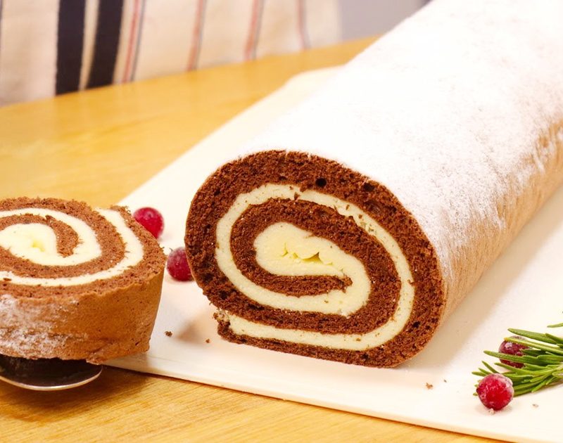 Հանել ջեռոցից, շրջել մեկ այլ սննդային թղթի վրա, որի օգնությամբ էլ կարող եք փաթաթել ռուլետը։ Նույն թղթով փաթաթել, որպեսզի փափուկ մնա