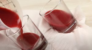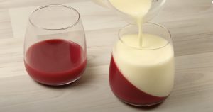 - Բաժակները թեքությամբ տեղավորել որևէ հարմարեցված տարայի մեջ: (կարելի է օգտագործել կեքսի ձևամանները) Ազնվամորով խառնուրդից լցնել բաժակների մեջ (30–40 %) և դնել սառնարանում 30–40 րոպե:
