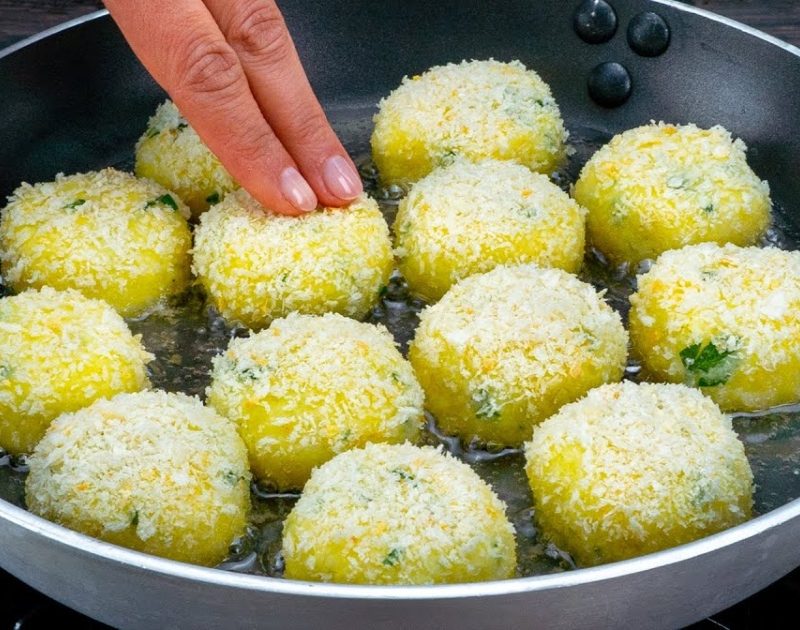 Խաշած կարտոֆիլը ճզմել, ավելացնել 1 ձու, քերած պարմեզան և մոցարելլա պանիրներ, աղ, սև պղպեղ, մանրացրած մաղադանոս, ճզմած սխտոր, 30 գ պաքսիմատ, լավ խառնել