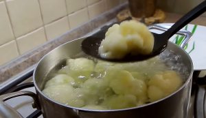 - Ջուրը տաքացնել, և մի փոքր աղ լցնել: Հենց ջուրը սկսի եռալ, ծաղկակաղամբը լցնել ջրի մեջ և 3-4 րոպե խաշել: