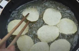 - Բուսայուղից հանել, թողնել անձեռոցիկի վրա, որ բուսայուղը դուրս գա: