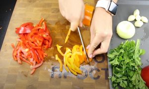 - Պղպեղները մանր, երկարավուն կտրատել: