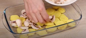 - Սունկը կտրատել, լցնել կարտոֆիլի վրա: