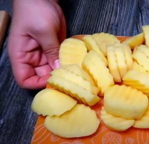 - Կարտոֆիլը և դդմիկը ձևավոր դանակով կտրատել: