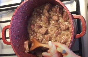 - Տավարի միսը ավելացնել սոխին, և տապակել: