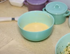 • Առանձին ամանի մեջ մյուս 2 ձվի հետ խառնել թթվասերը: