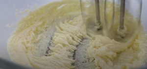 - Փափկեցրած կարագը, շաքարավազը և աղը լավ հարել: Այնուհետև ավելացնել դեղնուցը և ձուն: