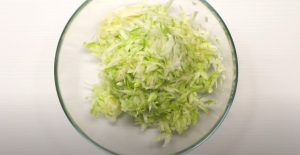 - Դդմիկը անցկացնել քերիչով, վրան աղ ցանել, թողնել 10 րոպե: