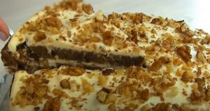- Տորթի յուրաքանչյուր շերտին կրեմ քսել, և ընկույզ շաղ տալ: