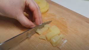 - Արքայախնձորի օղակները կտրատել: