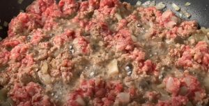 - Պատրաստել սոխարած, ավելացնել աղացած միսը և տապակել: