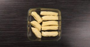 - Յուրաքանչյուրը բուսական յուղով պատել, դնել տարայի մեջ, փակել սննդային տոպրակով: