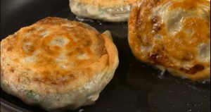 - Ալյուրին 3/4 թեյի գդալ աղ խառնել, ավելացնել տաք ջուր, բուսական յուղ, հունցել խմորը և բաժանել 7–8 մասի: