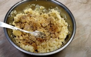 • Կարտոֆիլը խաշել և լավ ճզմել: Զանգվածը թողնել, որ սառչի: