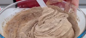- Կակաոն խառնել 100գ ալյուրին, քիչ-քիչ ավելացնել, և խառնել: