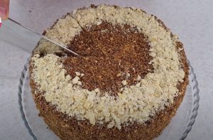 - Շերտերից հեռացրած ավելորդ խմորը մանրացնել, վանել տորթի վրա, ձևավորել ըստ նախասիրության: