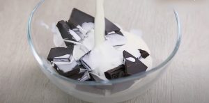 • 100 մլ սերուցքը տաքացնել, ավելացնել շոկոլադին և խառնել, մինչև շոկոլադի հալվելը:
