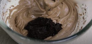• 300 մլ սերուցքը հարել, աստիճանաբար ավելացնել շոկոլադային զանգվածը և լավ հարել: