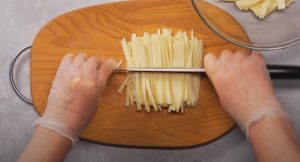 - Պանիրը մանր երկարությամբ կտրատել:
