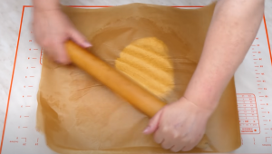 - Խմորը դնել յուղաթղթերի մեջ, և գրտնակով բացել: Յուղաթղթով շատ հեշտ և արագ է բացվում: