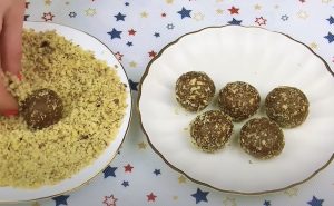- Գնդիկները թաթախել մանրեցված ընկույզի, կոկոսի քերուկի կամ հալեցրած շոկոլադի մեջ: