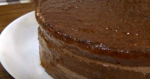 - Ջնարակը լցնել տորթի վրա, խահարարական դանակով հավասարեցնել և դնել սառնարանում մոտ 2 ժամ: