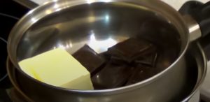 - Կարագը և շոկոլադը հալեցնել գոլորշու վրա, անընդհատ խառնել: