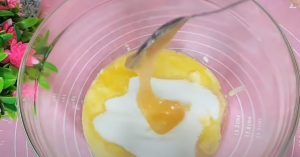 - Կարագը հալեցնել, սպասել, որ սառչի, ավելացնել ձուն, շաքարավազը, մեղրը և հարել, մինչև որ դառնա համասեռ զանգված: Ավելացնել սոդան և քացախը: