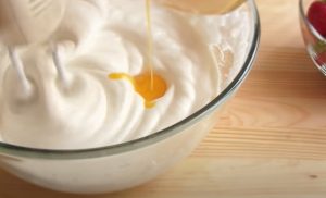 • Սպիտակուցի մեջ աստիճանաբար ավելացնել շաքարավազը՝ զուգահեռաբար հարելով: