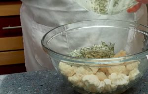 - Ծաղկակաղամբը հանել ջրից, սոուսը լցնել վրան և խառնել: