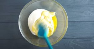 • Ավելացնել ձու և ձեռքի հարիչով հարել: